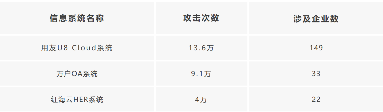 2025年6月,中央企业受攻击的主要信息系统及攻击次数如下表: