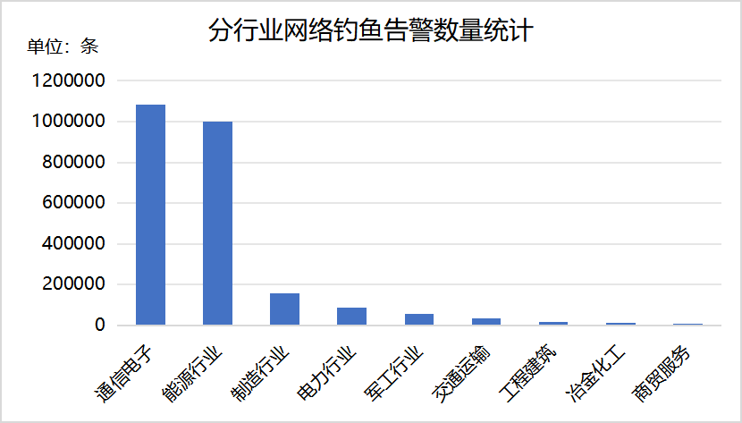 2025年6月,安全运营中心依托国资国企网络信息安全在线监管平台,共监测到网络钓鱼告警246.8万条,涉及187家中央企业单位。告警数量前三的行业为通信电子、能源行业、制造行业,告警数量分行业统计情况如下。本月,制造行业网络钓鱼告警数量增长明显,建议相关中央企业提高警惕加强防范。