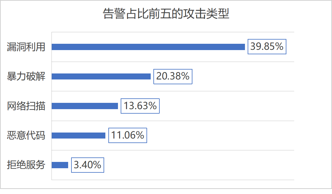 2025年11月,中央企业排名前三的告警类型分别为漏洞利用、暴力破解和网络扫描,告警占比如下图所示。
