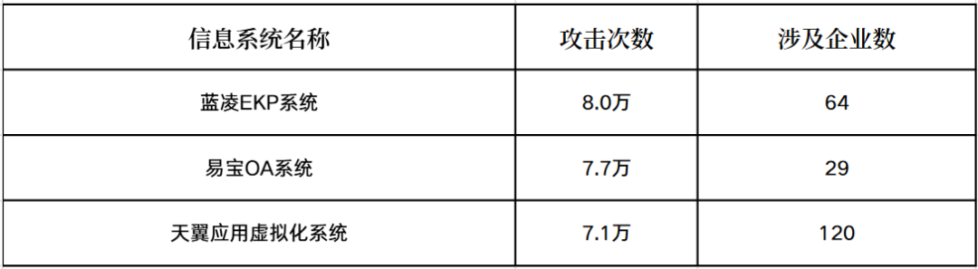 2025年11月,中央企业受攻击的主要信息系统及攻击次数如下表所示。