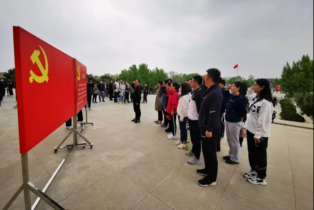 入党誓词是行动指南,是共产党人的座右铭,在中国人民抗日战争纪念馆门前,党支部全体党员整齐肃立,在组织委员王玉和同志的领誓下,面对鲜艳的党旗,举起右手,重温入党誓词,再次庄严宣誓:“我志愿加入中国共产党……随时准备为党和人民牺牲一切,永不叛党。”