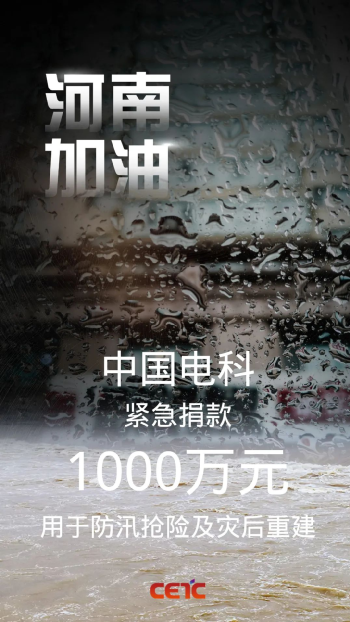 中国电科紧急捐赠1000万元全力支持河南防汛救灾